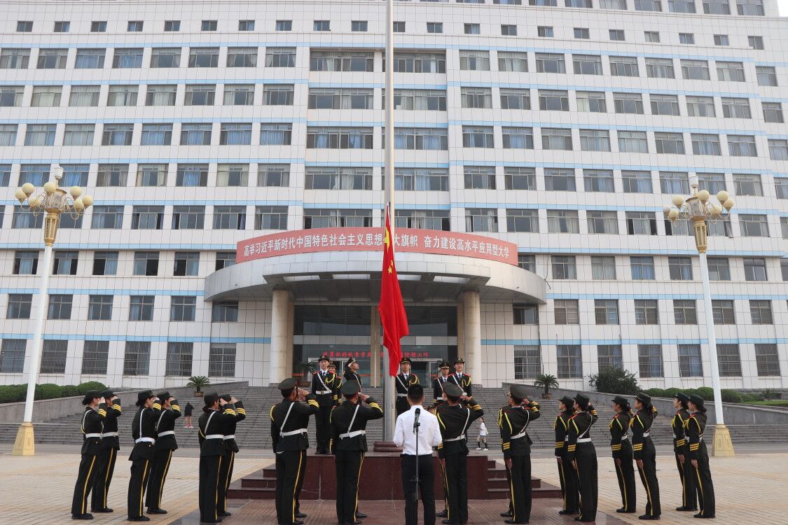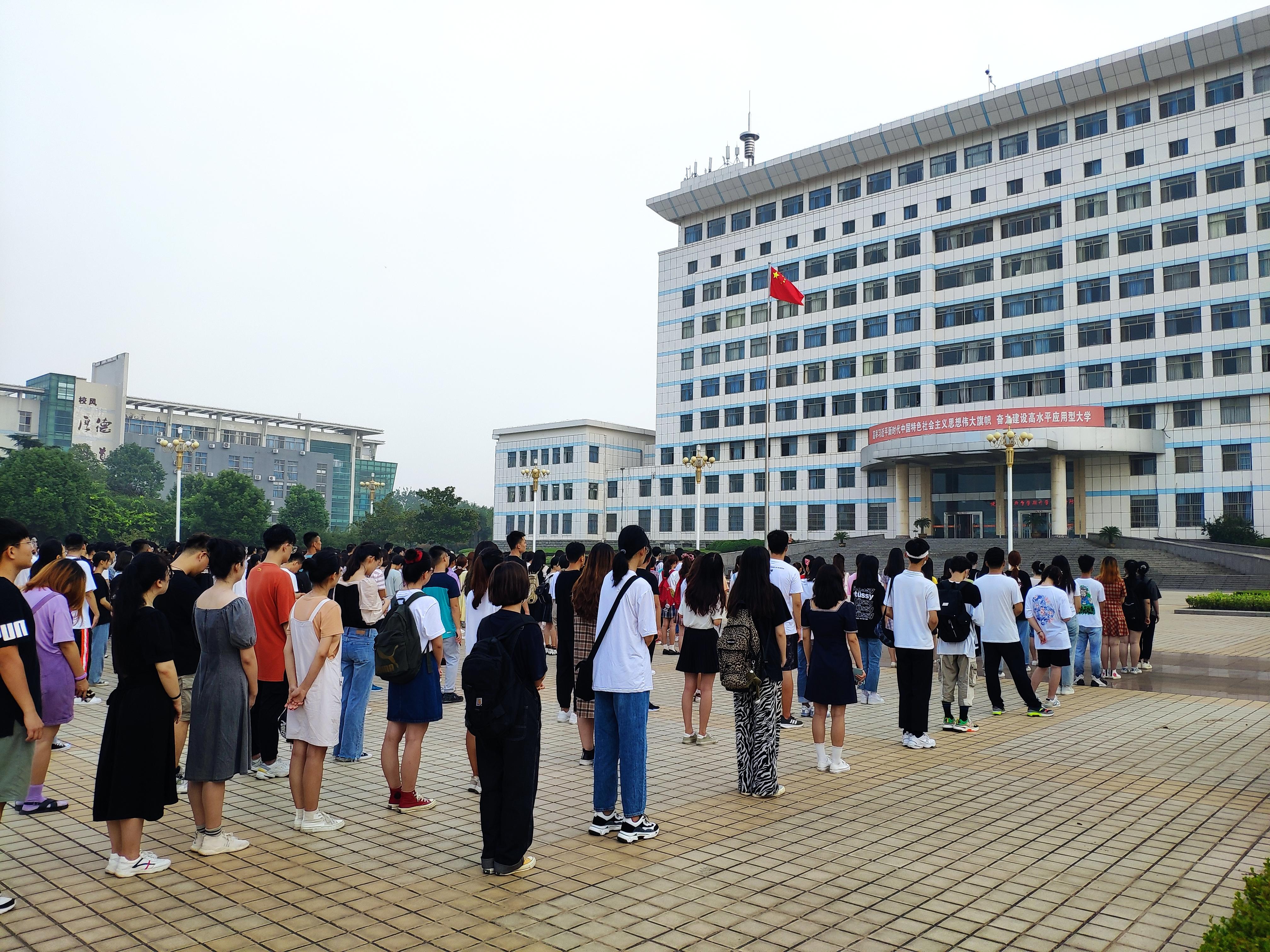 8月31日早晨,我校在综合楼前举行新学期升国旗仪式,团委及各学院师生代表1000余人参加升旗仪式。