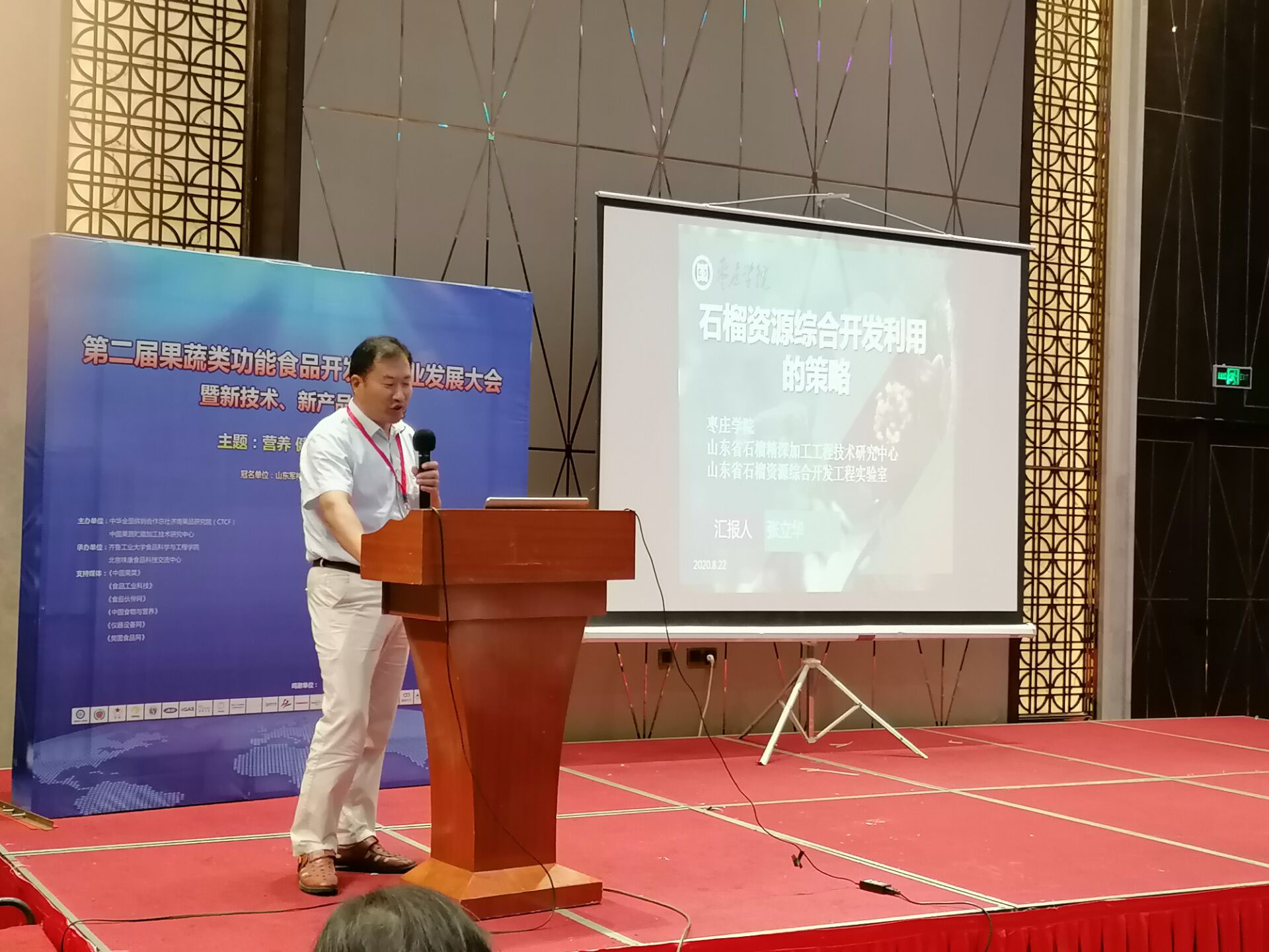 8月21日至23日,第二届果蔬类功能食品及产业发展大会在泉城济南隆重召开,会议有中华全国供销合作总社济南果品研究院和中国果蔬贮藏加工技术研究中心主办,齐鲁工业大学食品科学与工程学院承办,DB中国旗舰官方网站食品科学与制药工程学院作为协办单位参与了此次盛会。大会以“营养 健康 发展 合作”为主题,通过特邀报告、专题论坛、展览展示等形式,充分展示了我国果蔬产业发展的新技术、新成果。来自全国食品领域的各大高校、科研院所、龙头企业、社会团体及媒体等200家单位300余位专家学者共襄盛会。