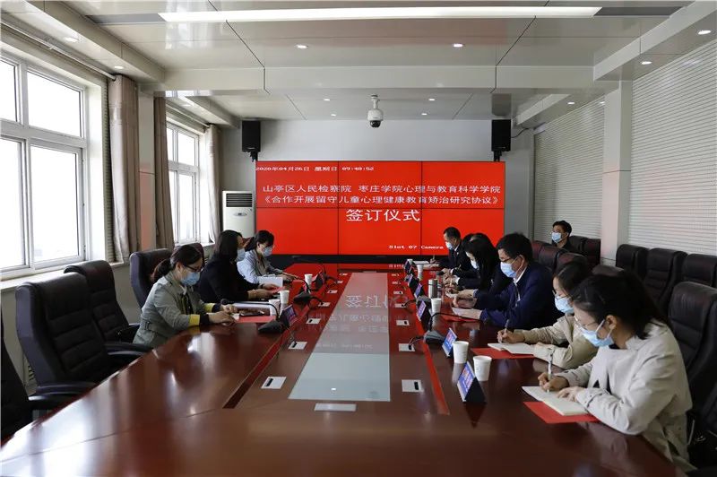 心理与教育科学学院与山亭区人民检察院本着产学研结合、优势互补的原则,将共同开展留守儿童心理健康教育矫治研究工作。合作将发挥我校心理学专业优势,促进未成年人检察工作社会支持体系建设,推动留守儿童心理健康教育矫治研究工作深入开展,切实保障未成年人健康成长,更好地服务地方发展。