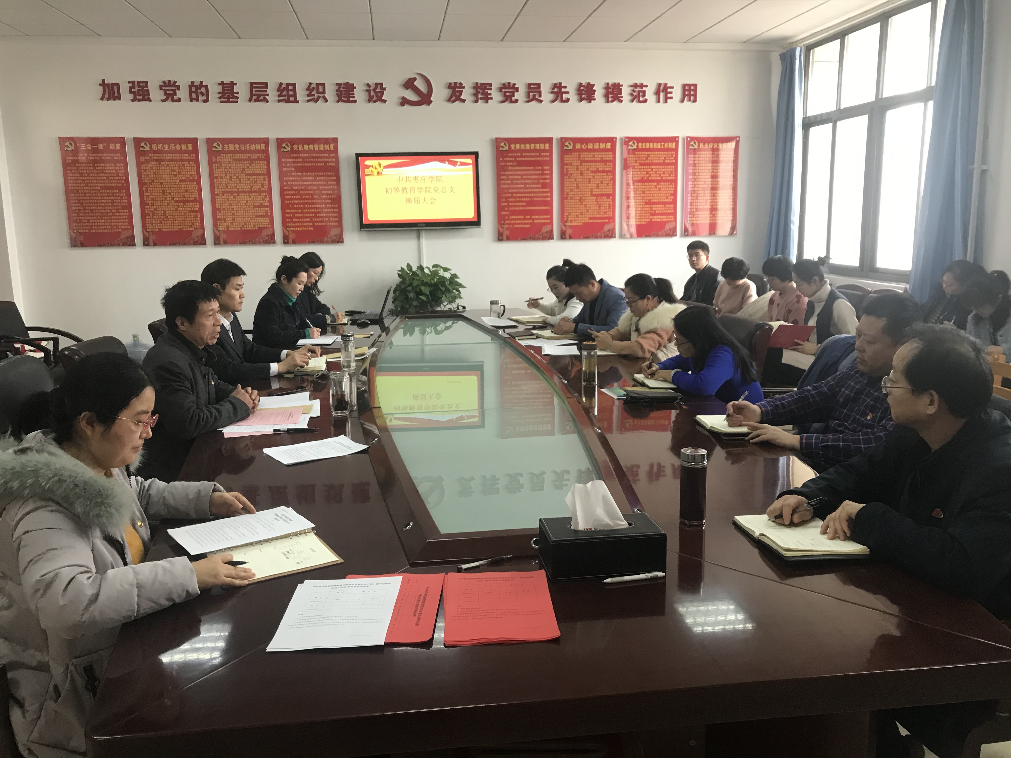 12月30日,初等教育学院在422会议室召开党总支委员会换届大会。参加本次会议的有正式党员25人,大会由初等教育学院党总支书记徐明忠主持。
