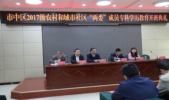根据省农村和城市社区“两委”成员专科学历教育工作总体安排,近日,枣庄电大、枣庄市党员干部现代远程教育中心联合举办的2017级农村和城市社区“两委”成员专科学历教育正式开班。市党员干部现代远程教育中心和市电大有关负责同志,区(市)委常委、组织部部长,区(市)委组织部分管副部长,区(市)党员干部现代远程教育中心主任出席开班式。区(市)电大(教师进修学校、职业中专)有关教师,区(市)各镇(街)党(工)委组织委员(科长),农村和城市社区“两委”成员专科学历教育全体学员参加开班式。开班仪式由区(市)委组织部分管副部长主持。