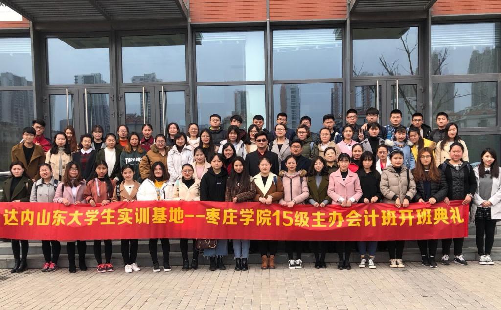 3月25日,经济与管理学院2015级主办会计专业学生,前往达内青岛光谷软件园开始为期4个月的企业实训,当日上午开班仪式举行。