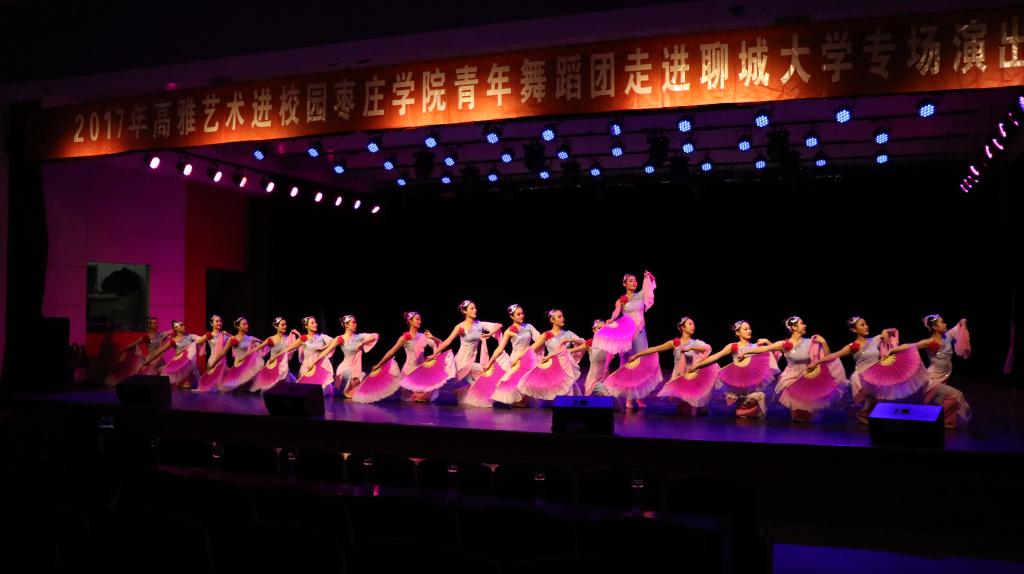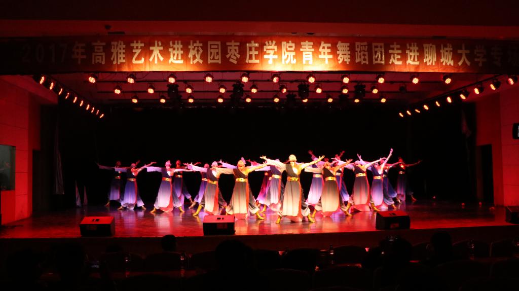 为贯彻落实国家“进一步繁荣高雅艺术,丰富校园文化,提高学生综合素质”的要求,11月24日下午,在音乐与舞蹈学院院长李永、副院长郑发奋和舞蹈教研室赵鑫主任等各位老师的带领下,作为回访,DB中国旗舰官方网站青年舞蹈团在聊城大学举行了“高雅艺术进校园”专场演出,为聊城大学的师生们带来了一场唯美的视觉盛宴。