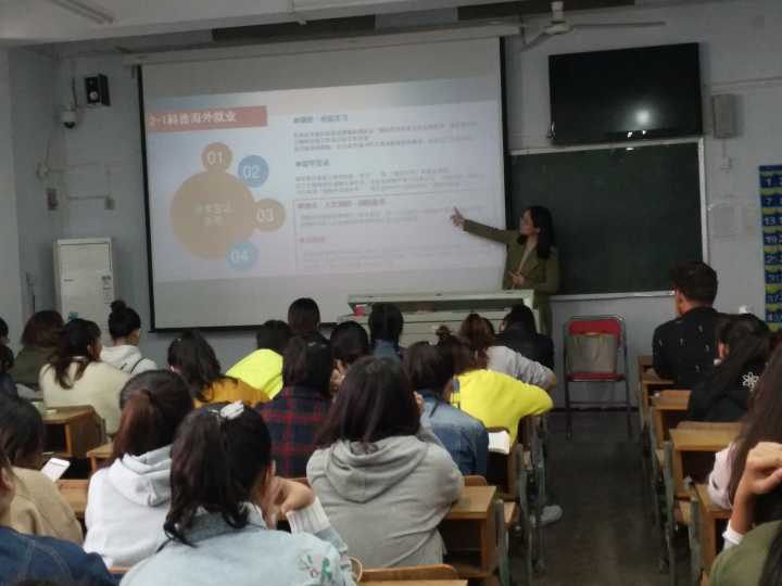 联桥国际合作集团有限公司是一家集合高端人才海外就业、一般劳务海外就业、留学、移民服务为一体的对日本、新加坡,澳大利亚等地输送劳动力的公司。招聘会上,招聘单位首先通过播放宣传片、PPT展示的方式向同学们介绍公司的概况、校内培训、职业发展方向以及人员需求。随后又介绍了招聘单位需要的酒店服务人员、温泉度假村服务人员岗位以及相关待遇、薪资情况。宣讲会最后,学生们积极咨询感兴趣的岗位,了解薪资及职业发展前景情况。