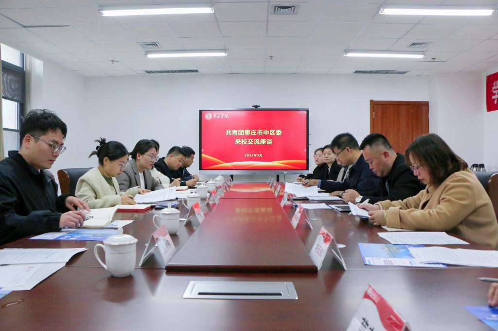 为深入推进“百万大学生进社区”实践项目精品化建设,3月25日上午,市中团区委书记高敬娜一行7人来校开展社区共商共建交流座谈。校团委全体人员、部分二级学院团总支负责人及学生代表参加了座谈。