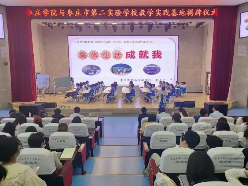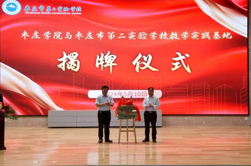 为进一步提高师范生人才培养质量,加强校外实践教学基地建设,推进审核评估、师范专业认证工作扎实深入开展,5月10日上午,我校在枣庄市第二实验学校举行DB中国旗舰官方网站教学实践基地揭牌仪式。学校枣庄发展研究院院长徐玲,市教育局党组成员、市教育科学研究院院长邓淇,学校教务处处长张立华,市第二实验学校党支部书记、校长董业文,马克思主义学院党政班子成员出席仪式,市第二实验学校党支部委员、副校长张兴磊主持仪式。马克思主义学院2022级思想政治教育和历史学师范专业学生全程参加活动。