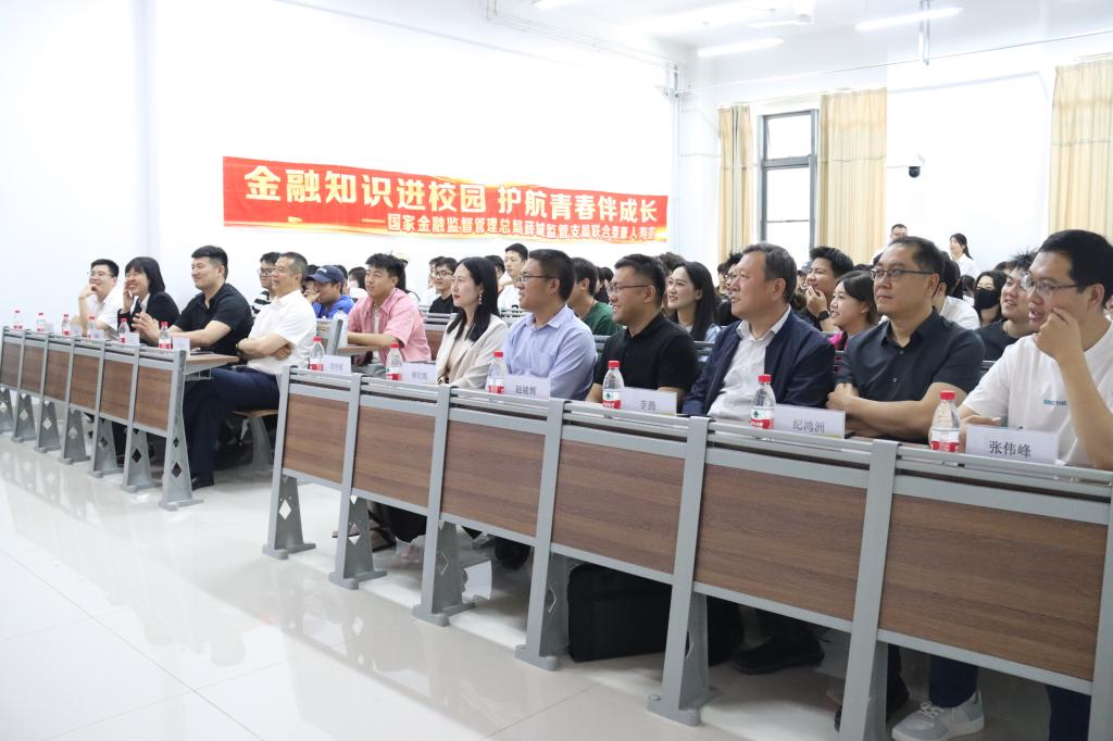 宣讲前,参加活动的国家金融监督管理总局枣庄分局普惠金融科科长郭艳媛、副科长赵绪辉、薛城支局副局长李腾、科长纪鸿洲、副科长张伟峰、泰康人寿枣庄中支总经理许国松、公共资源部经理陈静及薛城支公司经理刘涛与学院党委书记李永、院长吴蕾开展座谈并达成初步共识,要加强合作,加大宣传,共同推动,普及校园金融知识。