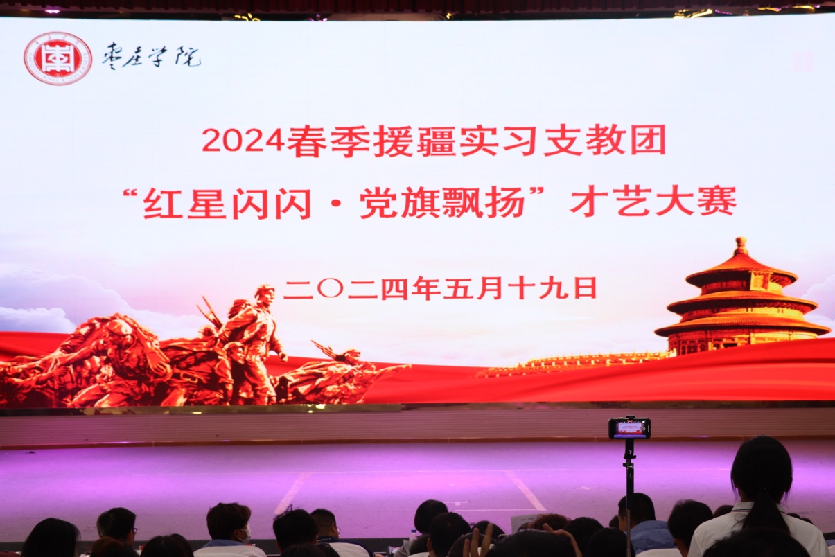 为进一步增强支教师生的爱党爱国情怀,充分展示支教大学生的艺术素养和精神风貌,丰富支教团的业余文化生活,5月19日晚,我校援疆实习支教团在东营第二希望小学礼堂举办以“红旗闪闪 党旗飘飘”为主题的才艺大赛。