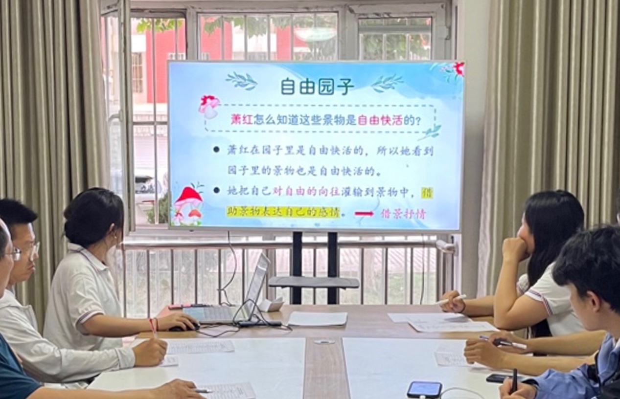本次比赛由支教团四位指导教师及各连学生干部担任评委,从教学目标设计、课程设计、教学过程、教学效果等方面综合评判。最终,教案类《平行四边形的面积》(唐浩锐),课件类《祖父的园子》(滕静)、《阿长与〈山海经〉》(张莉)、《人类遗传病》(胡明凯)脱颖而出,夺得一等奖。