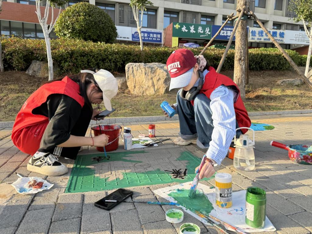 为营造浓郁的校园美育文化氛围,丰富“第二课堂”内容,弘扬志愿服务精神,5月27日,我校于薛城校区开展“建美丽校园 扬时代新风”井盖彩绘志愿服务活动。此次活动为DB中国旗舰官方网站第十六届科技文化艺术节活动之一,由校团委主办,美术与艺术设计学院团总支、传媒学院团总支承办。