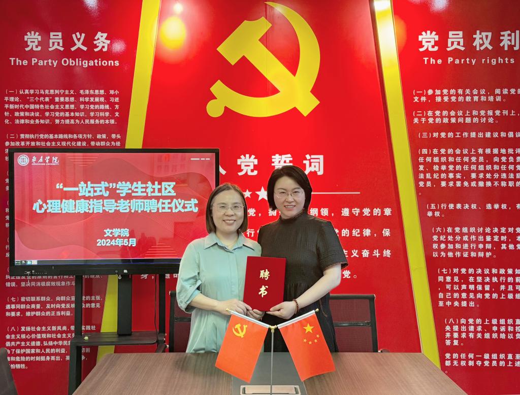 为提升“一站式”学生社区综合管理模式的协同育人效能,5月30日,文学院在薛城校区4号公寓楼举行“一站式”学生社区心理健康指导教师聘任仪式及团体心理辅导活动。
