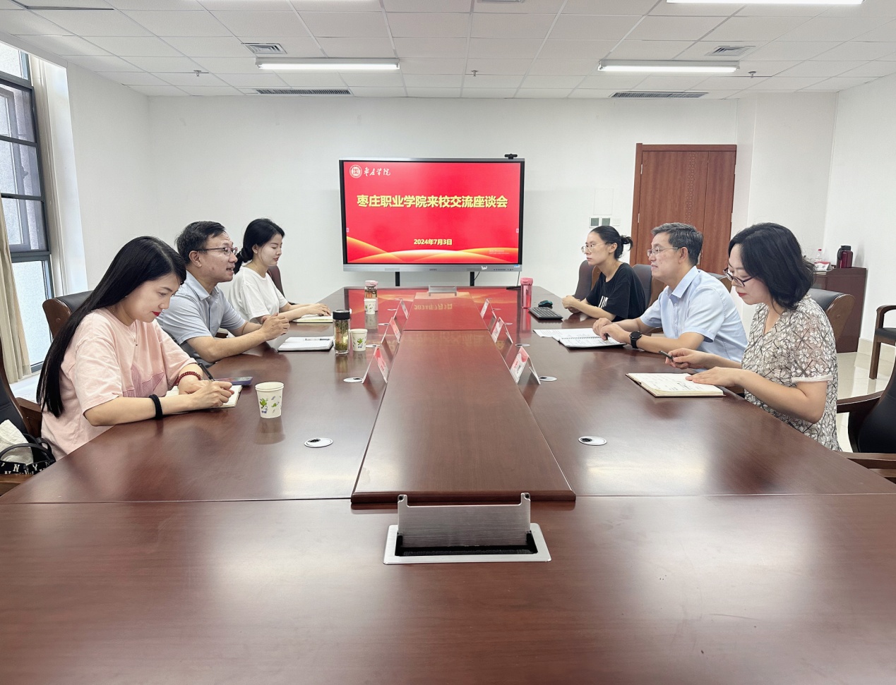 7月3日下午,枣庄职业学院学生工作处处长刘强一行3人来校座谈交流。我校学生工作处处长王维忠等3人在明理楼231会议室与刘强一行举行座谈。