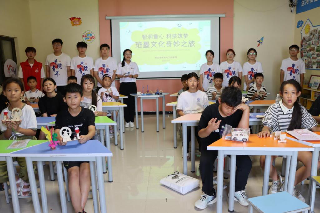 实践团队依托专业优势和特长,以开展家电义务维修为主线,进乡村、访民情、话振兴,运用所学知识助力乡村振兴,一个个“废弃”电饭煲、电水壶、电风扇、吹风机、洗衣机等在维修队手中如获新生,为村民们修复故障电器30余件。面对张庄村20余名留守儿童,志愿者们精心准备了生动有趣的科普宣讲,通过无人机、机器人、鲁班锁等为小朋友们讲解班墨文化、物理知识和科学原理等,并且带领他们动手组装手摇发电机、吉普车、小孔成像等作品,在小朋友心中埋下科教兴国的种子。