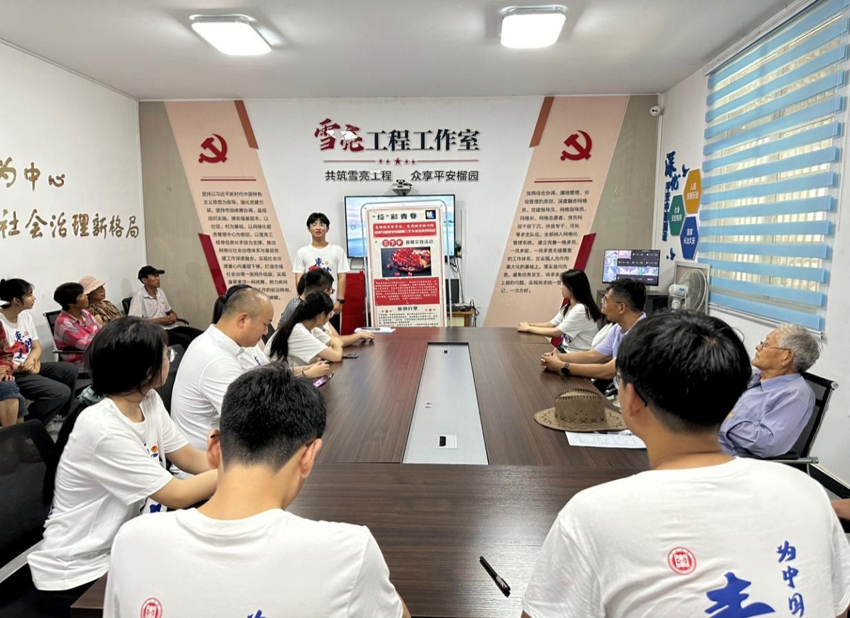 7月13日实践团队抵达峄城区和顺庄村,考察石榴产业助推乡村振兴实践情况。和顺庄村曾获得服务乡村振兴战略区级示范村等荣誉称号,当地农产品在现代化、产业化方面取得了一定成绩。实践团通过调研座谈、问卷调查等形式深入了解了当地石榴产业种植发展、销售情况。随后,实践团开展电商扫盲培训活动,利用专业知识向村民讲解电商和直播带货内容,为和顺庄村的特色农产品石榴等拓展更广泛的市场和销售渠道。