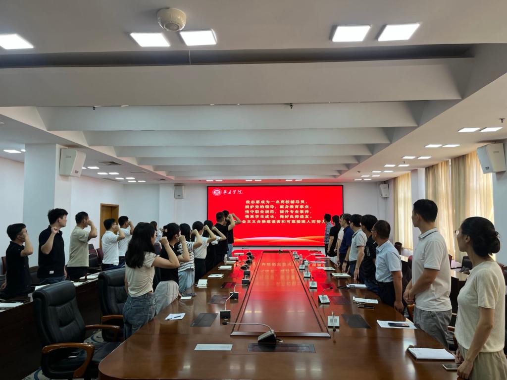 开班仪式上,王维忠处长代表学校对新入职辅导员们表示了热烈欢迎,并就如何做好学生工作提出了三点要求:一要转变角色定位,适应新岗位新要求,做一名善于学习的辅导员;二要增强责任意识,努力提素质强能力,做一名德才兼备的辅导员;三要遵守纪律规矩,勇于甘奉献敢担当,做一名担当作为的辅导员。