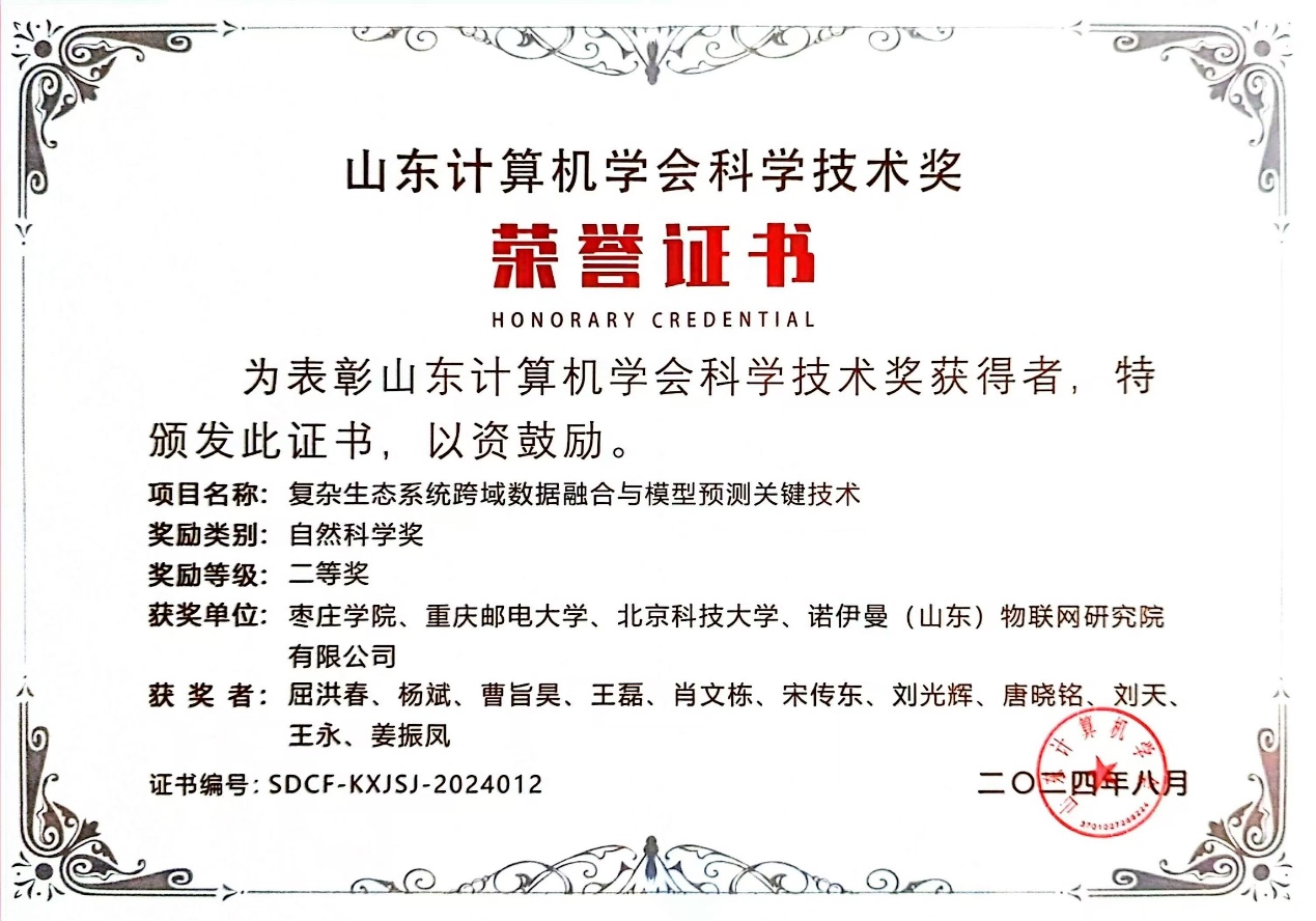 近日,山东计算机学会2024年度科学技术奖评审结果公示,我校信息科学与工程学院(人工智能学院)屈洪春教授团队牵头完成的“复杂生态系统跨域数据融合与模型预测关键技术”荣获得自然科学奖二等奖。