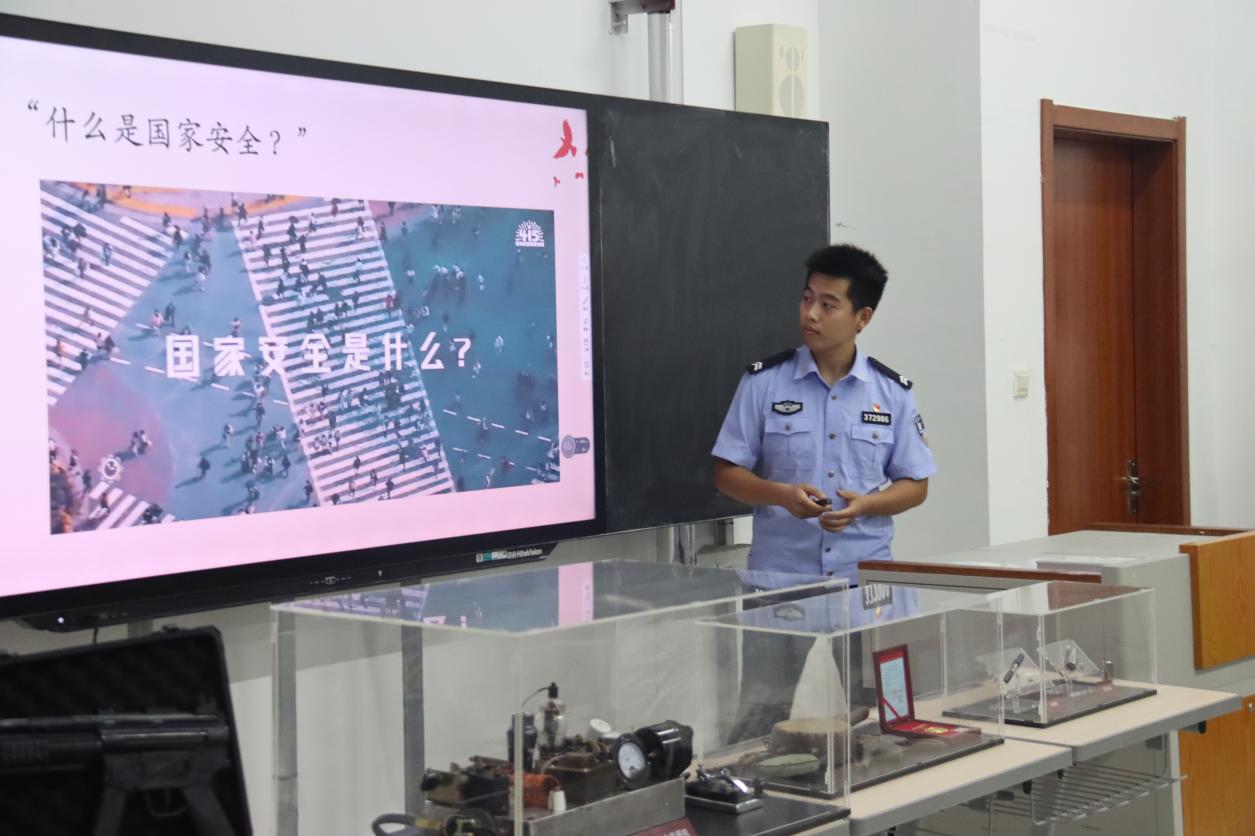 宣讲活动以一段震撼人心的国防安全宣传片拉开序幕。影片展示了我国强大的国防力量和军人的风采,让学生深刻感受到了国防安全的重要性。国安讲师结合当前国际国内形势,深入浅出地阐述了国防安全的内涵和意义。同时,他通过生动的案例,向学生们介绍了我国在国防建设方面取得的巨大成就。从我国的先进武器装备到强大的军事力量,从抗洪救灾到维和行动,每一个案例都充分展示了我国军人的英勇无畏和奉献精神。在互动环节中,大家就国防安全的热点问题进行了深入的交流和探讨。此次宣讲活动还设置了国防安全展示环节,国安讲师向学生们展示带来的模拟枪支。学生们踊跃参与,现场气氛热烈。