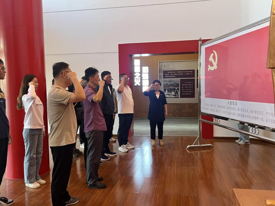 在讲解员的专业引领下,师生们逐一参观党史展厅、党建展厅、党支部主题活动室,走进新时代展廊、法治时空展廊等。馆内陈列着丰富的历史资料和实物,生动地展示了新中兴公司在党的领导下,历经风雨,不断发展壮大的历程,呈现了中兴公司在民族工业振兴历程中的实践探索与贡献。活动中,全体党员师生整齐列队,庄严举起右手,重温入党誓词,再一次用铮铮誓言诠释入党初心。