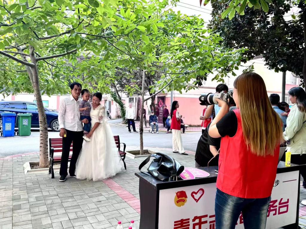 志愿者们扛起相机,走进社区,与社区居民交流沟通拍摄需求,为他们量身定制拍摄方案。志愿者们拿起化妆刷,充分发挥美术学科专业优势,为有需要的居民化妆。在拍摄现场,居民们在充满爱意的互动中,露出幸福的笑容。志愿者们认真调整角度,寻找最佳光线,随着快门清脆的声音,大家的笑容定格在美好的一瞬。拍照结束后,志愿者们辅助专业人员修出照片,一张小小的照片,留下一段美好的回忆,一个短短的镜头,展现出大家幸福的精神风貌。据悉,当天的拍摄活动长达6个小时,共为60余户居民拍摄300多张个人照或全家福。