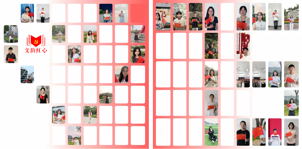 文学院还将收集到的党员照片进行创意编排,精心冲洗并制作成“爱心”与“75”两个大型图案。这两个图案不仅寓意着全体党员师生心向祖国、共庆华诞的深情厚谊,也展现了“党韵红心”党建品牌的独特魅力。这一创意展示成为了校园里一道亮丽的风景线,吸引了广大师生的驻足观看,激发了更多人的爱国热情和民族自豪感。