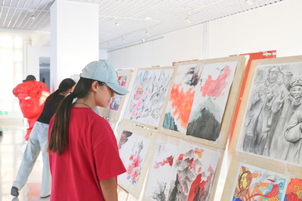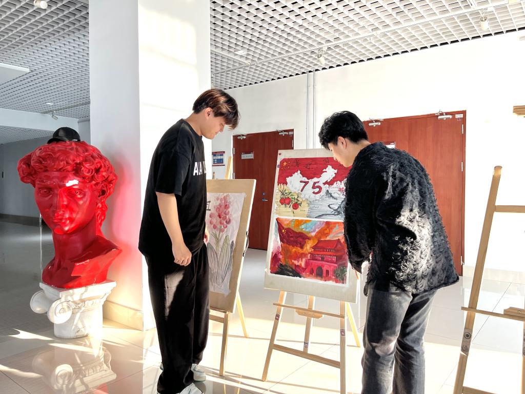 为庆祝中华人民共和国成立75周年,弘扬中华民族传统文化,激发广大同学爱党、爱国热情,9月27日,美术与艺术设计学院于博雅楼3楼展厅举办庆祝中华人民共和国成立75周年书画作品展览活动。此次活动由校团委主办,美术与艺术设计学院团委承办。
