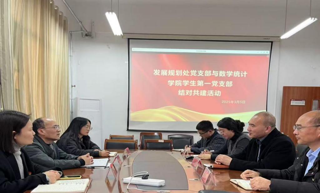 3月5日下午,发展规划处党支部和数学与统计学院学生第一党支部在豁然楼A510举行结对共建活动。发展规划处处长、党支部书记李相明带领支部成员参加,会议由数学与统计学院学生第一党支部书记韩晓瑞主持。