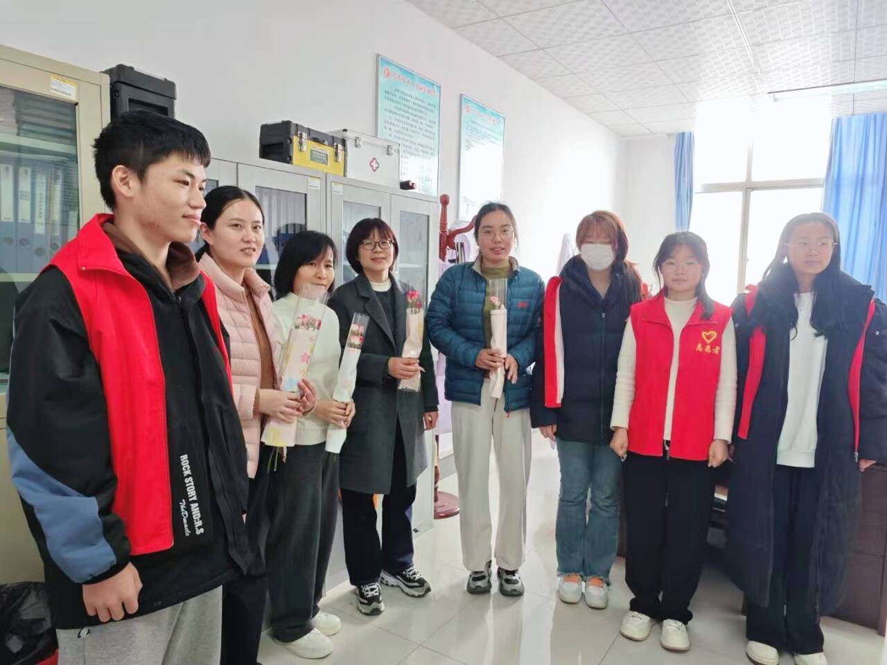 上午,学生会代表走进实验室、办公室,为女教工送上精心准备的鲜花与贺卡。一束束康乃馨承载着“向阳而生、桃李芬芳”的美好寓意,学生亲手书写的祝福语更让老师们倍感温暖。