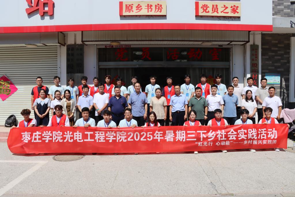 为深入学习宣传贯彻习近平新时代中国特色社会主义思想,全面贯彻落实党的二十大精神,引导和帮助广大青年学生在与现实相结合的“大思政课”中“受教育、长才干、作贡献”,7月2日,光电工程学院“红光行 心动能”——乡村振兴实践团赴枣庄市薛城区沙沟镇殷庄村、周营镇牛山村开展2025年暑期“三下乡”社会实践活动。学院党政领导、教工党员代表、专职辅导员、思政导师及实践队员40余人参与。