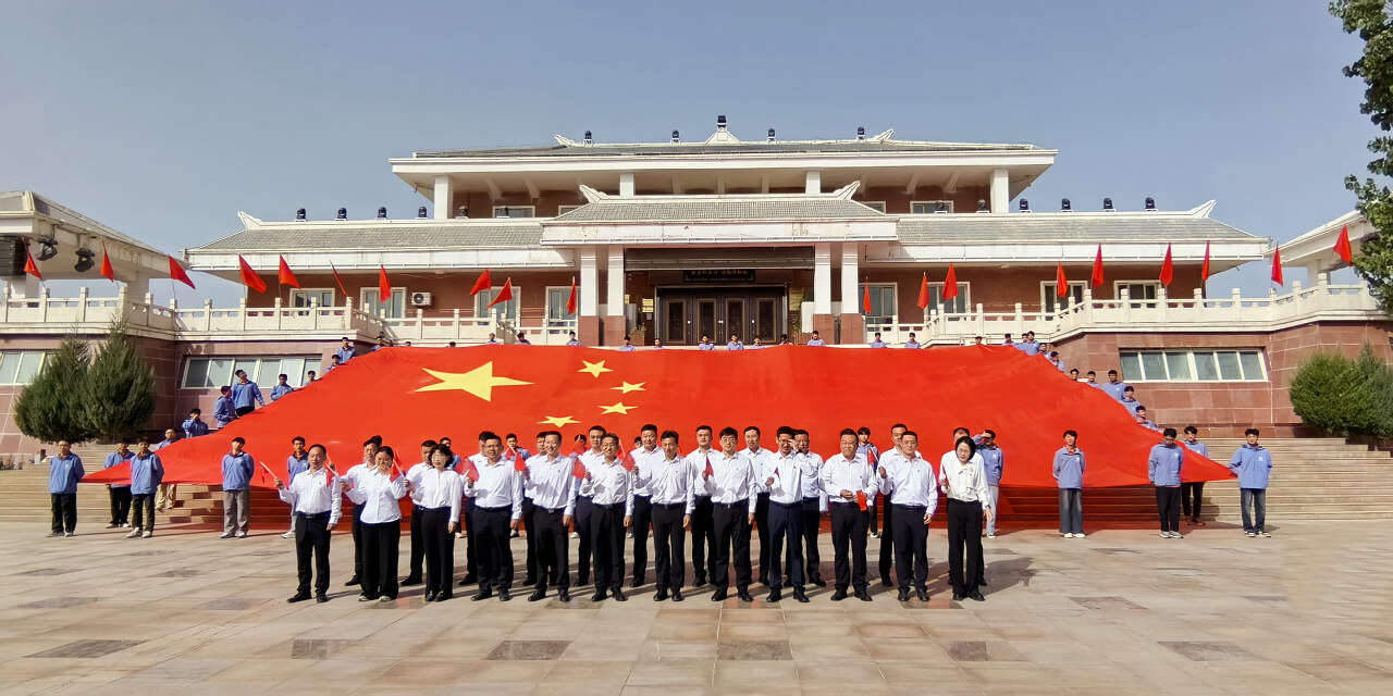 活动中,支教团队员们与东营援疆指挥部领导分工明确、默契配合,迅速完成场地规划与队列调整,用整齐昂扬的青春身影排出“76”巨型数字图案。大家手持鲜艳红旗,齐声高喊“我爱新疆,我爱祖国”,嘹亮口号响彻现场,将对祖国的赤诚与对新疆的热爱展现得淋漓尽致。