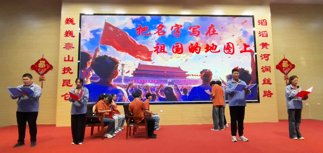 10月4日,支教团在疏勒二中礼堂开展“诵红诗庆华诞·守初心援边疆”朗诵活动。朗诵会设置个人、双人、集体等多种形式。选手们声情并茂,现场掌声不断,洋溢着浓厚爱国热情,展现支教团成员的文化素养和精神追求。