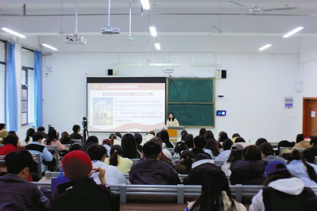 为深入学习贯彻党的二十届四中全会精神,引导青年学生深刻领会国家治理体系和治理能力现代化的重大意义与丰富内涵,11月12日,我校青马培训班在薛城校区举办党的二十届四中全会精神专题报告会,市中校区同步直播,第40期青马学员240余人参加了报告会,报告会邀请马克思主义学院讲师颜思思讲授。