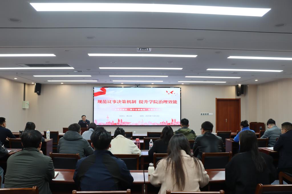 规范执行“两个议事规则”是推进科学决策、民主决策、依法决策,提升治理体系和治理能力现代化的重要举措,对于加强院级党组织集体领导、党政分工合作、协调运行工作机制具有重要意义。此次专题培训将进一步增强院级党组织落实议事决策制度的主动性、针对性,提升议事决策能力和水平。