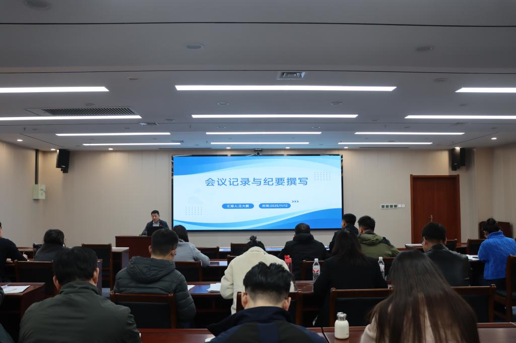 机关党委书记、办公室副主任王大鹏结合我校工作实际,以“会议记录与纪要撰写”为题作报告,围绕会议记录与会议纪要的核心差异、会议材料的规范撰写等方面进行系统讲解,并以实例解析了从会议记录到会议纪要的转化过程,针对性解答了议题不规范、记录不精准等问题,为参训人员提供了可直接借鉴的实操指南。