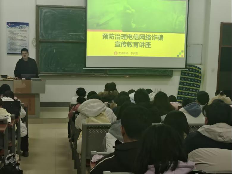 辅导员李长蓬围绕“什么是电信诈骗”“常见诈骗形式”“识别防范方法”及“上当后补救措施”四大核心内容,结合典型案例拆解搜索陷阱、老友冒充、刷单返利等七大常见骗术,揭露了诈骗分子利用虚假信息诱导转账、盗取个人信息的作案套路,总结出“身份难确认+非接触沟通+要求转账”的诈骗识别公式。针对学生群体特点,重点提醒学生警惕网购、网恋等校园高发诈骗,不泄露银行卡密码、手机验证码,通过正规平台交易。讲座内容丰富,气氛轻松,具有警示意义。