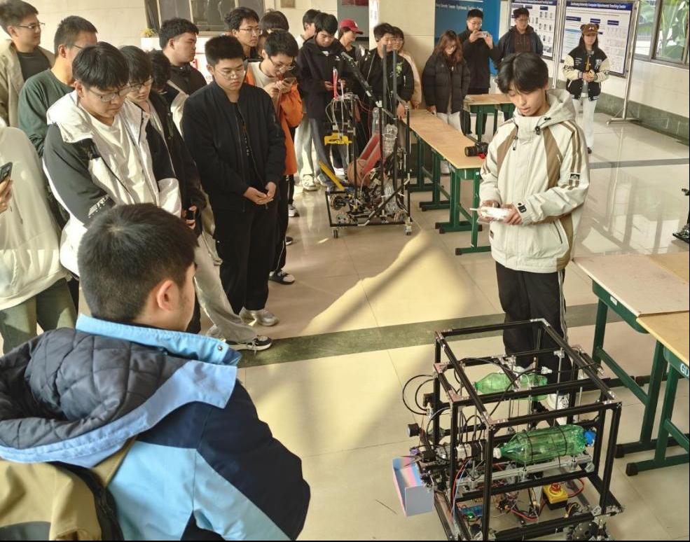 此次科技文化展紧扣学风建设内涵,设置成果展示、互动体验、前沿科普三大板块。在成果展示区,集中展示“挑战杯”“互联网+”“全国大学生机器人大赛”等国家级赛事获奖作品、专利证书及科研成果,直观展现了光电学科的发展实力,强化了学生专业认同感和使命感。在互动体验区,提供了太阳能小车竞赛简易套件,低年级学子现场组装套件、同台竞技;互动体验台通过趣味实验,让抽象光电原理具象化,激发探索热情。2025级应电专业季远飞表示:“动手实践让我感受到专业知识的实用价值,更愿意主动探索课外知识。”在前沿科普区,以图文形式介绍量子通信、人工智能芯片等领域成果。“学长学姐有话说”交流角,优秀学子分享科研与学业经验,传递“言信、行果”务实精神。
