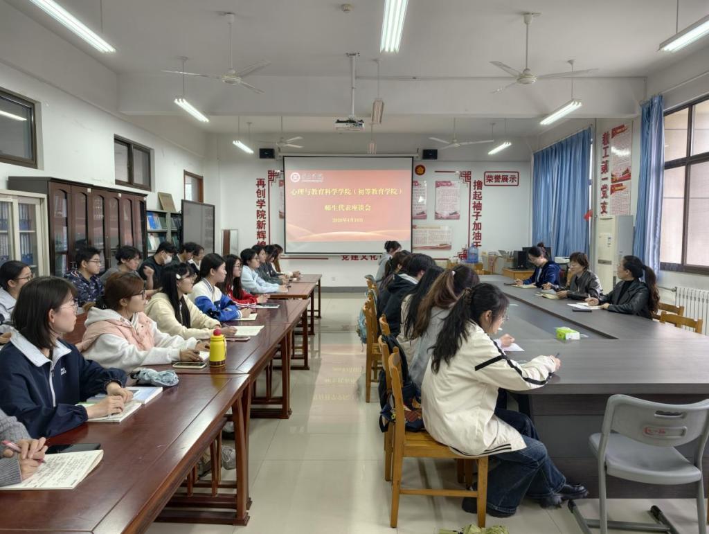 为扎实推进树立和践行正确政绩观学习教育,深入查改问题,切实解决师生关切,4月16日下午,心理与教育科学学院(初等教育学院)在市中校区学院资料室召开师生代表座谈会。学院领导、教师代表与学生代表参加座谈会。