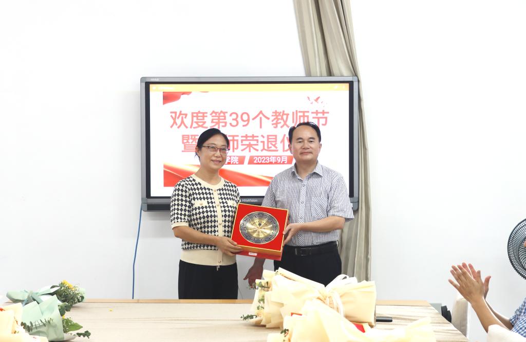 会议为即将荣退的曹新伟教师和年满30年教龄的教师颁发了纪念品。院长张爱民代表学院向全体教职员工致以节日的问候和崇高的敬意,他回顾了文学院46年的发展历程,肯定了退休教师30多年来为学院发展做出的贡献,对退休教师表达了感谢和不舍之情,并希望老师们退休后能够继续支持学院事业发展。