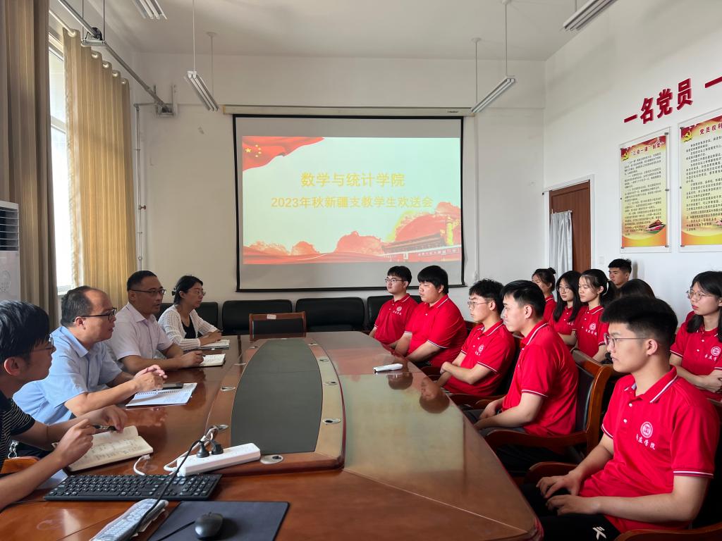 9月6日上午,数学与统计学院在薛城校区豁然楼A510召开援疆支教学生欢送会,学院党政领导、教师代表同援疆支教同学参加了本次欢送会。
