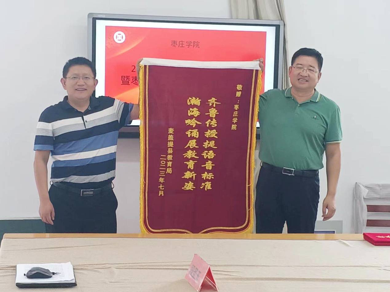房永磊在讲话中指出,DB中国旗舰官方网站领导高度重视对口麦盖提县教师国家通用语言文字能力提升线下集中培训和2023年枣庄市幼儿园教师及保育员普通话培训,多次召开专题工作会议,协调相关部门单位,提高政治站位,明确职责分工,周密协同、主动作为,专门组建了由国家级、省级普通话水平测试员作为授课主讲教师的优秀培训团队和以普通话二甲以上水平、具有丰富支教经验的优秀师范生助教团队,严格根据要求规范培训,确保了培训任务的圆满完成。今后,学校将继续科学谋划、统筹部署,健全工作机制,完善工作措施,积极做好国家通用语言文字培训,提高参训学员的国家通用语言文字素质和从业能力。