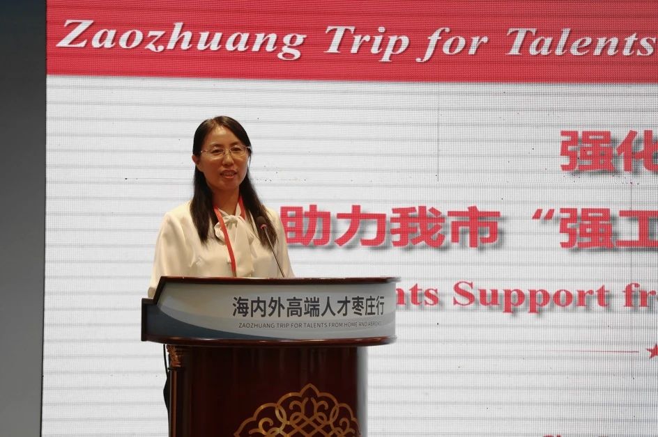 我校国际交流处处长褚夫敏作为受邀嘉宾作了《强化人才支撑助力我市“强工兴产”“工业倍增” 》主旨发言。在发言中,褚夫敏向与会人员介绍了学校的办学历史、办学规模、人才培养、科研创新、师资队伍、服务地方、国际交流与合作等方面基本情况,并重点介绍了学校充分发挥高等学校人才聚集地、创新策源地作用,对接枣庄“6+3”产业体系汇聚高层次人才、完善校企人才双向流动机制以及对接“6+3”现代产业应用型人才培养的实践和探索。