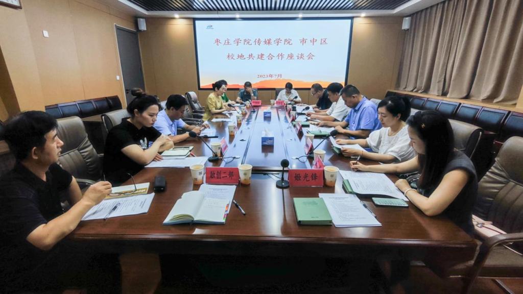 座谈交流中,蔡永清介绍了传媒学院的基本情况,重点介绍了广播电视编导、动画、数字媒体艺术三个专业注重实践育人的人才培养特色。市中区宣传部副部长、融媒体中心主任王琪介绍了市中区融媒体中心的发展现状,表达了对传媒专业技术人才的渴求与合作的愿望。双方畅所欲言、坦诚相见,就合作建立大学生实习就业基地、开展新媒体运维管理与实践、毕业生留枣就业等,达成了共识。参会人员就学生就业实习等问题进行了交流。