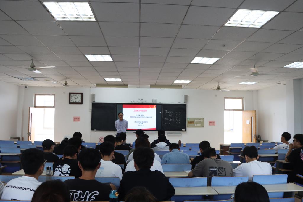 根据我校主题教育工作安排,5月29日上午,校党委委员、宣传部长在市中校区多媒体教学楼501室讲授主题教育专题党课,光电工程学院学生代表聆听党课。