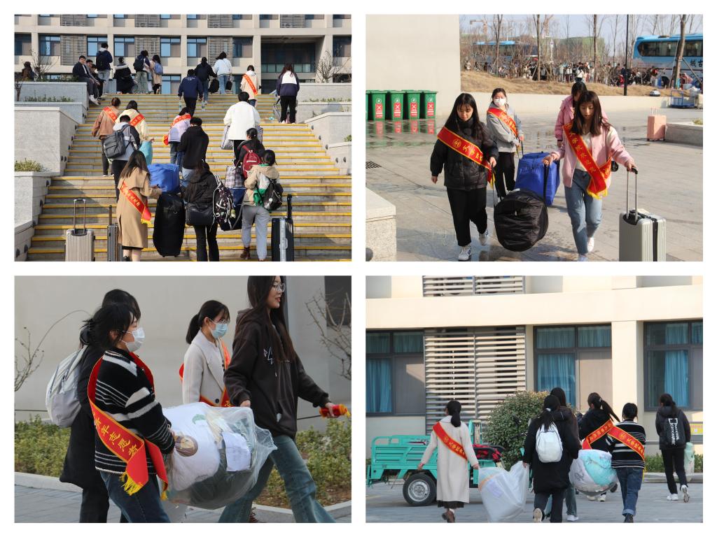3月1日下午,由院党总支书记宋建修带队,党员师生佩戴党徽,身披绶带,很早就来到了迎新点进行准备。所有党员同志秉持团结互助的理念,热情高涨地投入到搬运工作中,协助新同学将一件又一件行李搬到宿舍。沉重的行李并没有难住志愿者们,密集的阶梯也没有阻挡党员的脚步,整个过程有条不紊、高效有序,没有一名党员喊累,没有一名党员退缩。