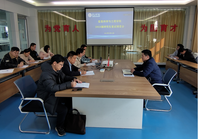 2月24日上午,信息科学与工程学院在墨子楼二楼会议室召开2023届研究生复试调度会,研究生复试指导教师线上线下参加会议。院长闫昕主持会议。