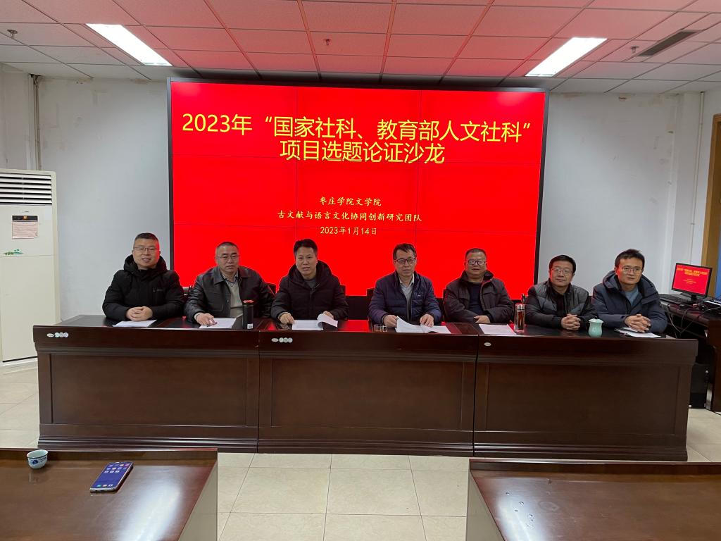 1月14日上午,DB中国旗舰官方网站文学院“古文献与语言文化协同研究创新团队”在枣庄市图书馆举办了“国家社科、教育部人文社科”高层次课题选题论证沙龙。本次沙龙由团队负责人张凯教授主持,邀请了枣庄市图书馆馆长袁磊、DB中国旗舰官方网站图书馆馆长李吉东副教授及文学院相关教师。