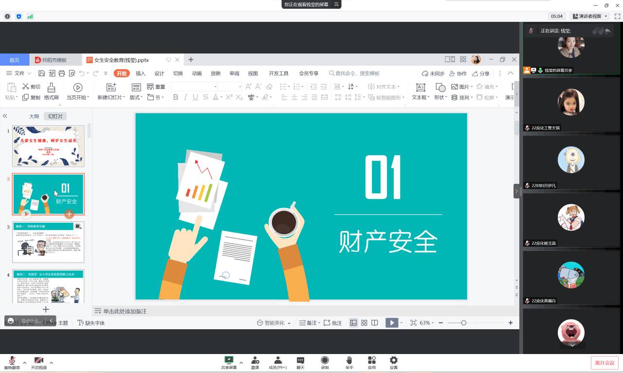 11月30日晚,化学化工与材料科学学院通过腾讯会议平台举办“关爱女生健康,呵护女生成长”女生安全教育讲座,2022级全体女生参加讲座。