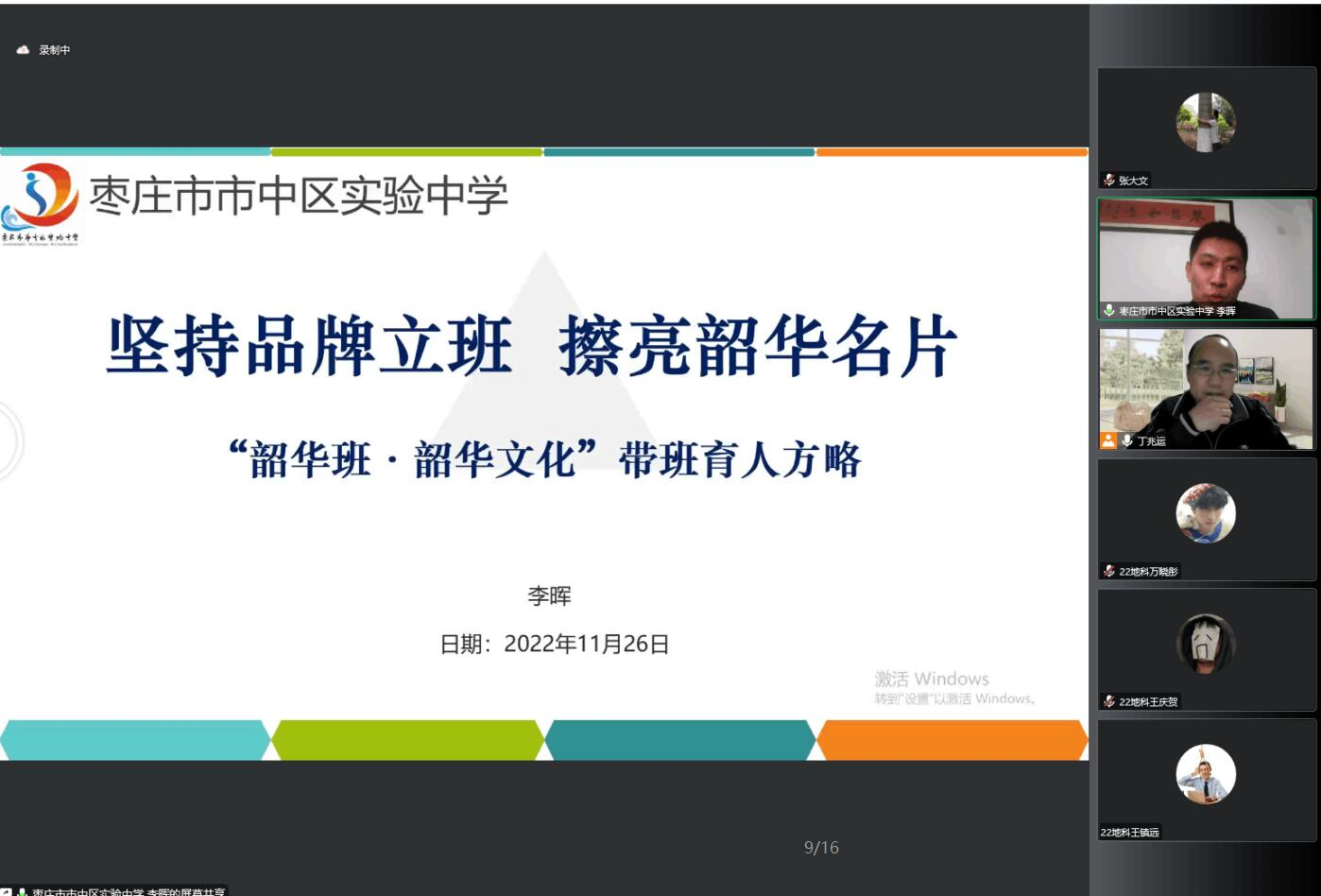 另一位主讲人李晖老师分享了“韶华班·韶华文化”带班育人的方略,以外塑形象,内强素质;制度规范,民主气氛;活动凝聚,方法引领;精神锻造,灵魂点燃”32字方针的班级建设核心理念为主线,分享了优秀的班级管理方法。