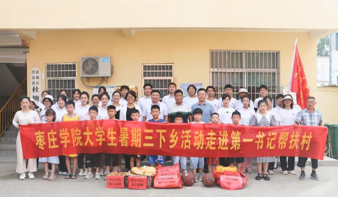 今年暑期,由校团委和美术与艺术设计学院共同组建的“助力乡村振兴,青春献礼二十大”社会实践调研团前往枣庄市薛城区沙沟镇杜塘村,实践团队通过问卷调查以及实地走访等方式,深入了解该村的环境卫生治理、留守儿童教育和空巢老人生活情况,以实际行动为乡村振兴进言献策;开展留守儿童志愿服务活动,为20余名留守儿童开展课业辅导、防溺水以及交通安全教育,为留守儿童捐赠了价值2000余元的文化学习用品;助力美丽乡村文化建设,义务绘制社会主义核心价值观、文明乡风等200余平方墙绘,让家门口成为乡村的“文化长廊”,百姓的“活课堂”,为乡村振兴插上“文化翅膀”。
