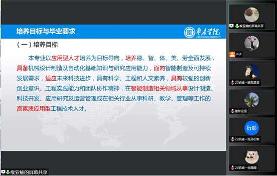 9月20日下午,机电工程学院开展专业导航线上会议,各教研室主任从专业学习、课程安排、生涯规划等方面出发,向全体新生详细介绍所学专业的发展状况、核心课程、办学条件,以及学习过程中可能用到的应用软件等基本情况。学院针对新生们关注的课程设置、考研就业等问题作了详实具体的介绍和解答,对同学们大学期间的生涯规划方向进行了指导,勉励同学们珍惜时间,努力学习,争取度过充实无悔的校园时光。