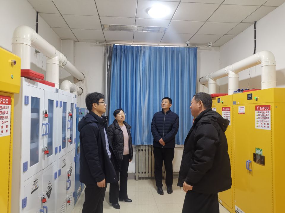为排除安全隐患,确保期末及假期校园平稳、安全、有序,根据学校《关于做好2022年春节寒假有关工作的通知》安排,1月10日上午,化学化工与材料科学学院党总支书记艾衍辉、院长刘春丽带领实验室安全小组对学院科研室和基础实验室进行安全大检查。